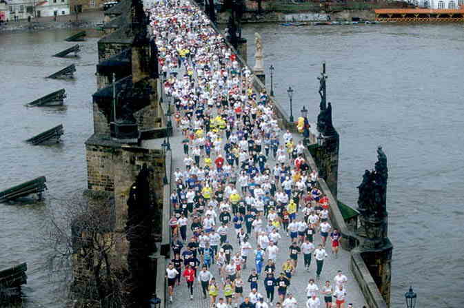 Prag kannte ich noch nicht, hatte aber viel Interessantes darüber gehört, vor allem, dass sich ein Besuch dort lohnen würde. Als passionierter Läufer bot es sich natürlich an, den Besuch mit dem dortigen Marathonlauf zu verbinden. Ich hatte schon viele Bilder von Prag gesehen, u.a. auch in meinem Marathonreiseführer. Und alle bestärkten mich in meiner Idee. Mit Bernhard, meinem Lauffreund sprach ich vergangenen November beim Monaco-Lauf darüber. Irgendwie ist Bernhard unternehmungslustiger als ich, denn Anfang dieses Jahr rief er mich an und wies mich auf einen Laufverein hin, der eine Bus-Reise zum Marathon nach Prag organisierte, bei der auch Vereinsfremde mit konnten. Er hatte sich schon angemeldet, Kosten incl. Busfahrt und 3 Übernachtungen ca. Euro 240,-. Spontan entschloß ich mich, auch mit zu machen. Auch Ute konnte sich im Geschäft frei nehmen und war mit von der Partie.